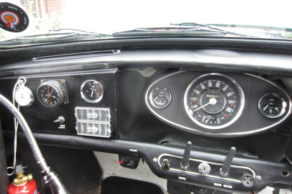 As in the production line Mini cars, gauges manufactured and designed by SMITHS Instruments featured in the dashboards of the rally cars. There was little change to the instrument arrangement, with the speedometer mounted in the classic central position.