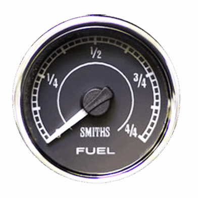 Smiths classic flight 52mm back-lit digital fuel gauge with half round chrome bezel and white illumination, standard calibration is 10-180 Ohms