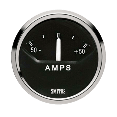 SMITHS brand Cobra 52mm electrical Ammeter. 50-0-50 Amps. Available in full v or 1/2 round chrome bezel.