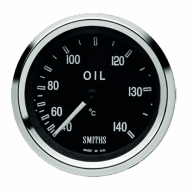 Smiths Cobra 52mm mechanical oil temperature gauge. 0-140°C. 7/8 capillary. Available in full v or 1/2 round chrome bezel.