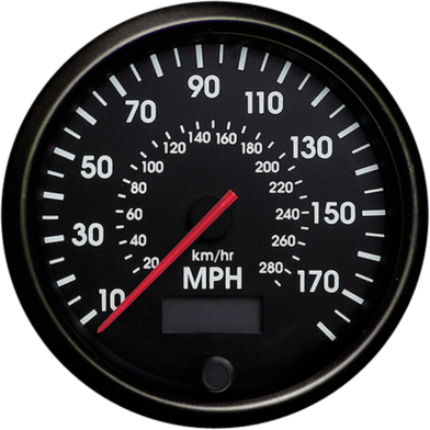 With black dial, white print, black full ‘V’ bezel and red pointer. Available in MPH and KMH scale.