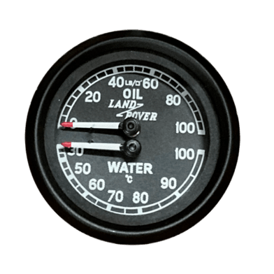 52mm oil and water gauge with black dial and black full V bezel. 0-100psi and 30-100°C. K type bulb
