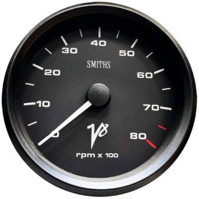 100mm 8K tachometer with black dial white print and full v black bezel.