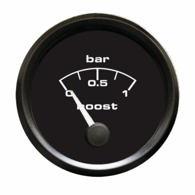 52mm diameter black dial with white print and pointer and full v black bezel. Red illumination. 0-1bar
