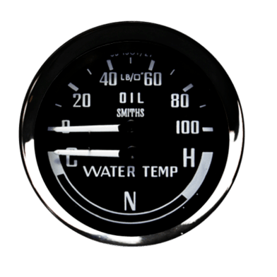 52mm gauge with white illumination and strap fixing. 0-100psi, C N H. A2 type bulb. Available with black dial and 1/2 ‘V’ chrome bezel or magnolia dial and 1/2 round or 1/2 ‘V’ chrome bezel.