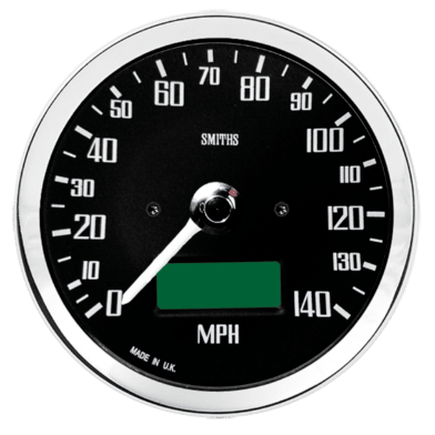 Smiths Classic 80mm electronic speedometer for the MGB GT V8 with black dial and half vee chrome bezel. Available in MPH and KMH scale. 12v remote trip
