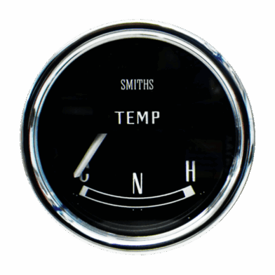 Smiths 52mm water temperature gauge C N H. Available in black or magnolia dial with full ‘V’, 1/2 ‘V’ or 1/2 round chrome bezel.