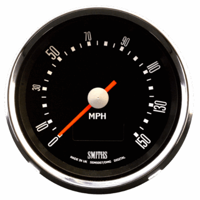 82mm European style motorcycle speedometer with billet case and waterproof seal. OLED display with trip and total readout. Available in MPH and KMH, with chrome or black bezel.
