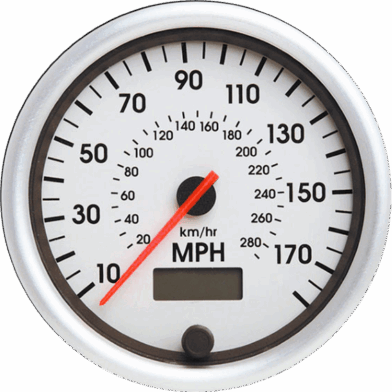 Smiths Telemetrix 180mph speedometer with half round anodised aluminium bezel, cirrus white dial, black print and red pointer. LCD display with front reset showing trip or total. 12V. Available in MPH or KMH