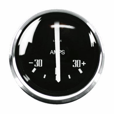 Classic full face slotted dial with 52mm full vee chrome bezel, domed glass, white pointer, white print and LUCAS Logo. Also available with flat glass.