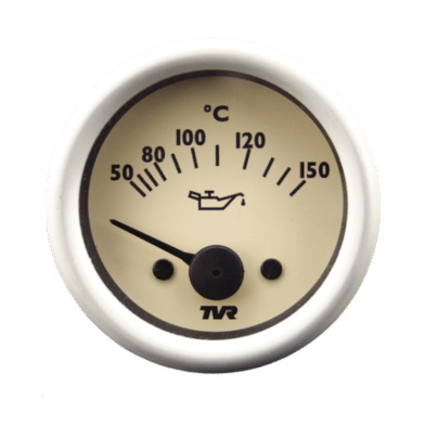 Oil temperature indicator available with black, magnolia, cirrus white or mint green dial. Half round aluminium bezel. 15-150°C