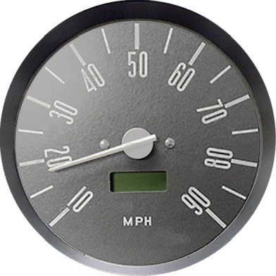 VW 120mm digital bay-window type speedometer with grey dial. Instructions and templates supplied to existing panel, odo or trip readout, onboard “drive-to-set” programming, available in Mph and Kmh.