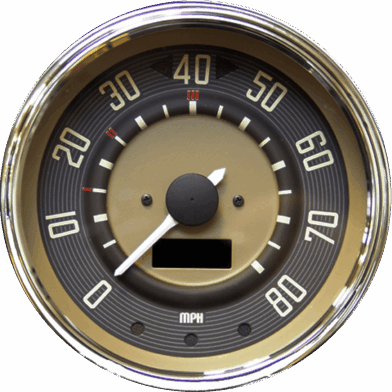 Digital Speedometer dashboard fit for the Split Screen Type 2 with odo or trip readout, indicator, high beam, oil pressure and charge warning lights onboard “drive-to-set” programming. Available in MPH or KMH