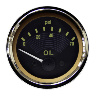 52mm Oil Pressure gauge for the VW Type2. Brown dial, cream print and full ‘V’ chrome bezel.