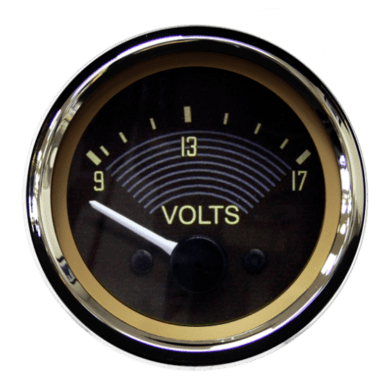 52mm Voltmeter for the Volkswagen Type 2 with brown dial, cream print and full ‘V’ chrome bezel.12V