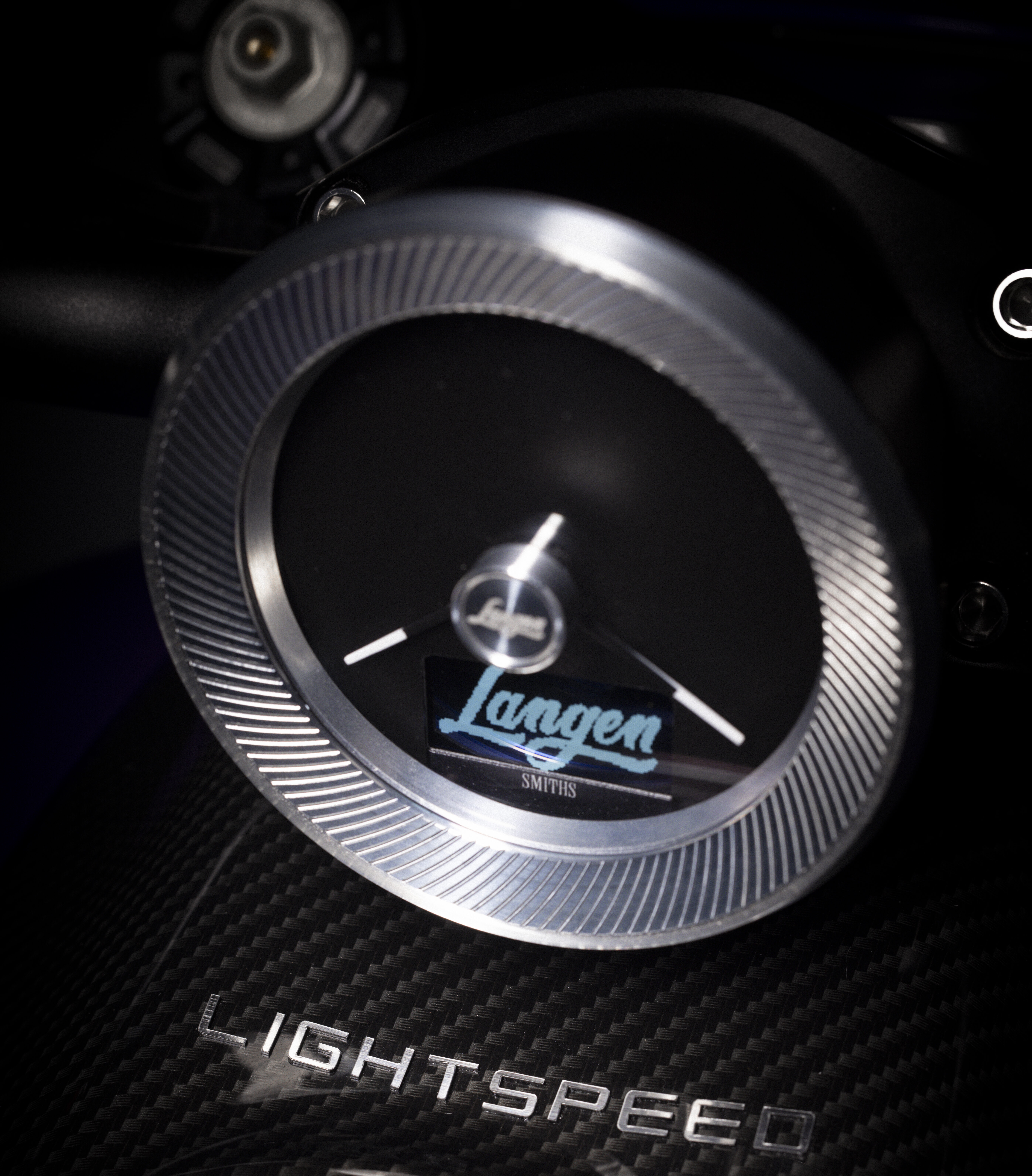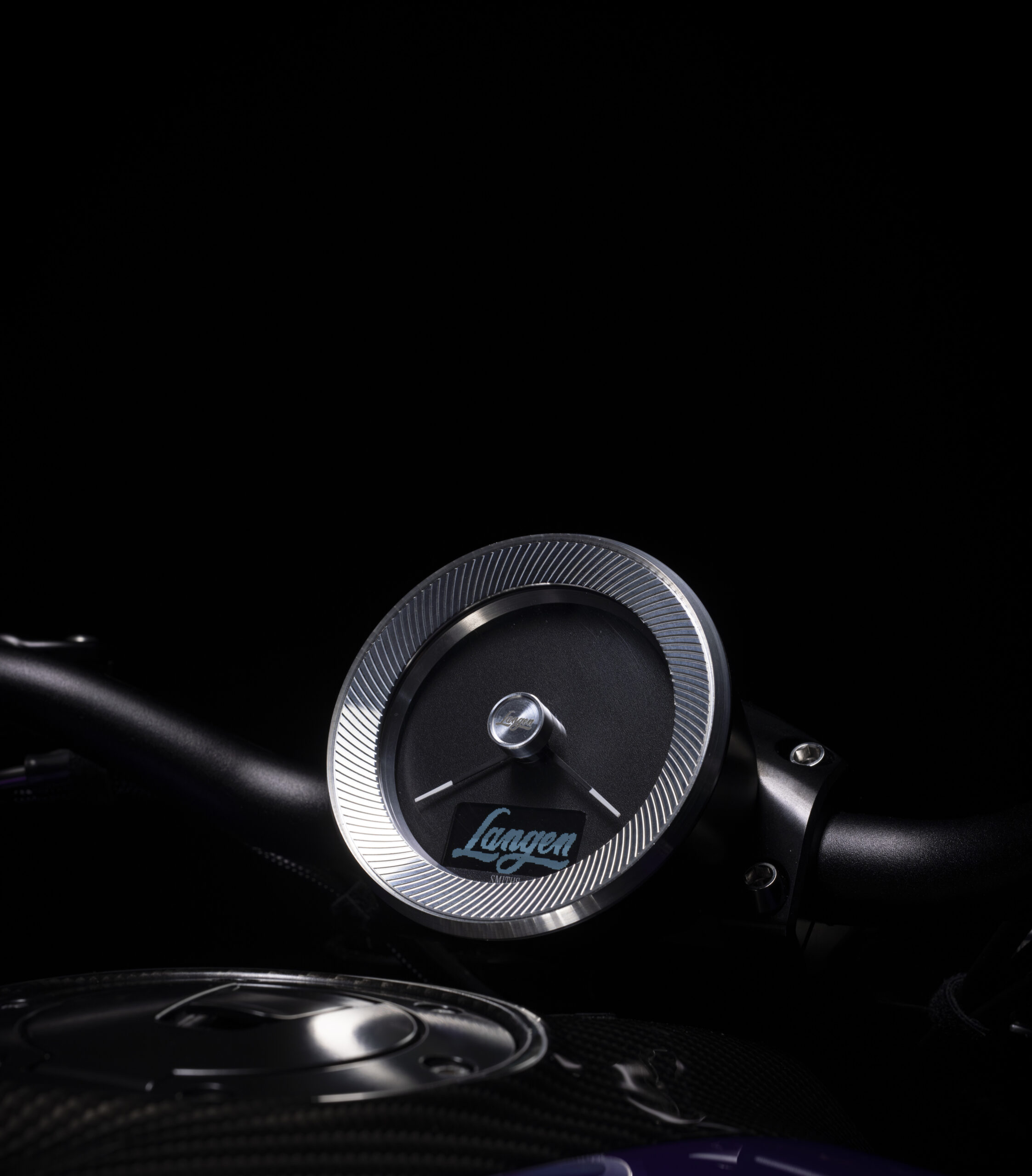 The design features a machined billet case and bezel, black dial and features the hallmark of the ‘LightSpeed’; a helix which also features on the exhaust pipe and the rear lighting. The central embellishment features the Langen logo.