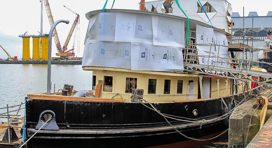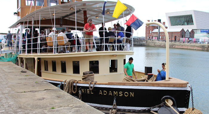 The Daniel Adamson (also affectionately known as “The Danny” ) boasts a remarkable history. Built during the steam age at Cammell Laird shipyard in Birkenhead in 1903, and then known as the Ralph Brocklebank, she was one of many vessels built to work on the River Mersey and inland waterways. She is unique in being the last surviving steam-powered tug to be built on the Mersey and believed to be the oldest, operational Mersey-built ship anywhere in the world.