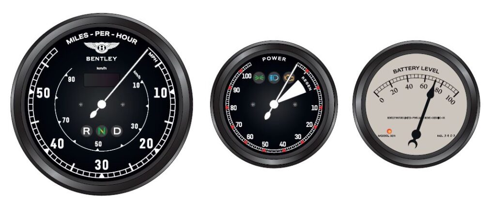 Gauges designs for the Bentley Blower Junior from The Little Car Company